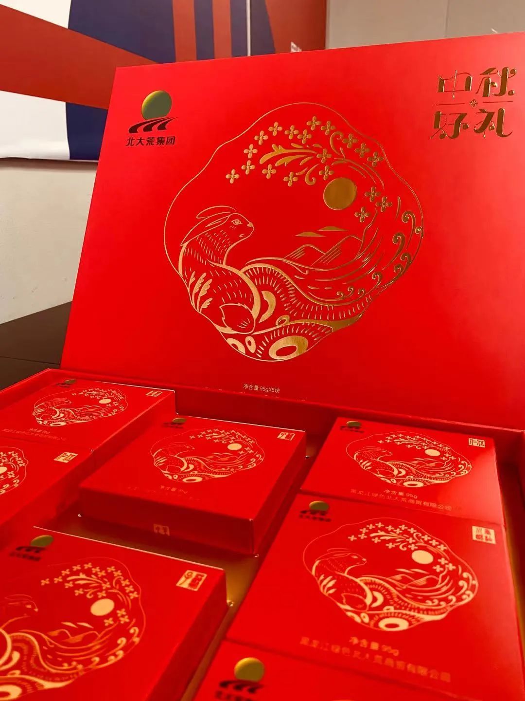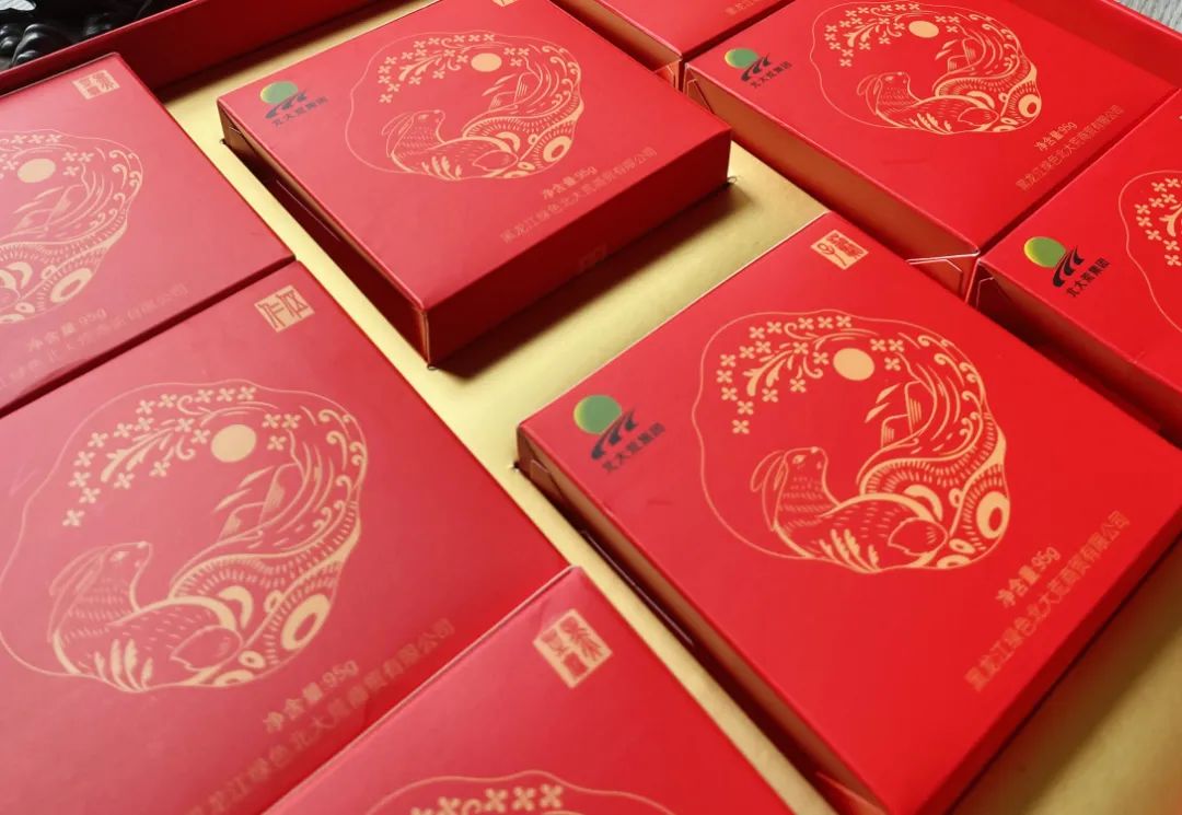 【唐门方案】:望月礼盒采取中国节日传统颜色-红色作为主色调。手绘玉兔又突显年轻化,整体画面烫金工艺,简洁又不失高档。